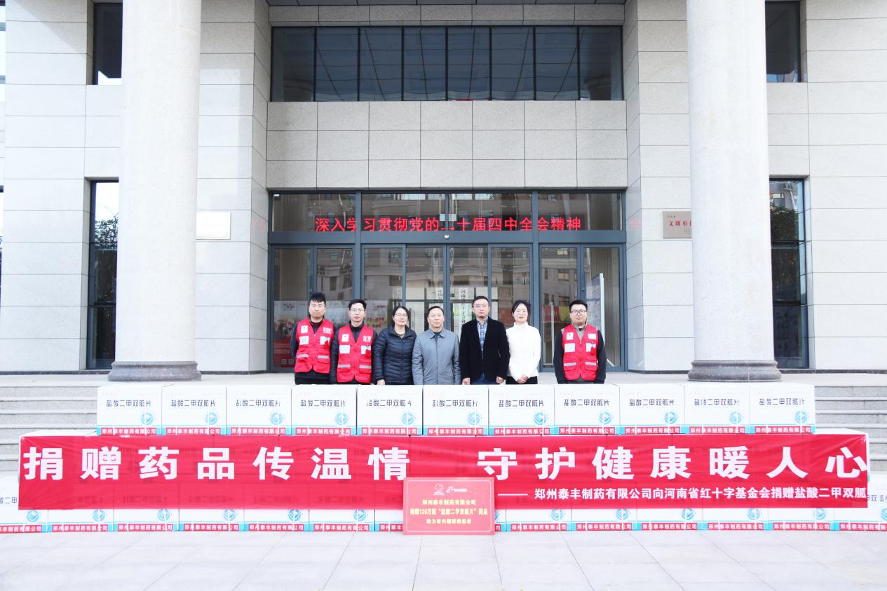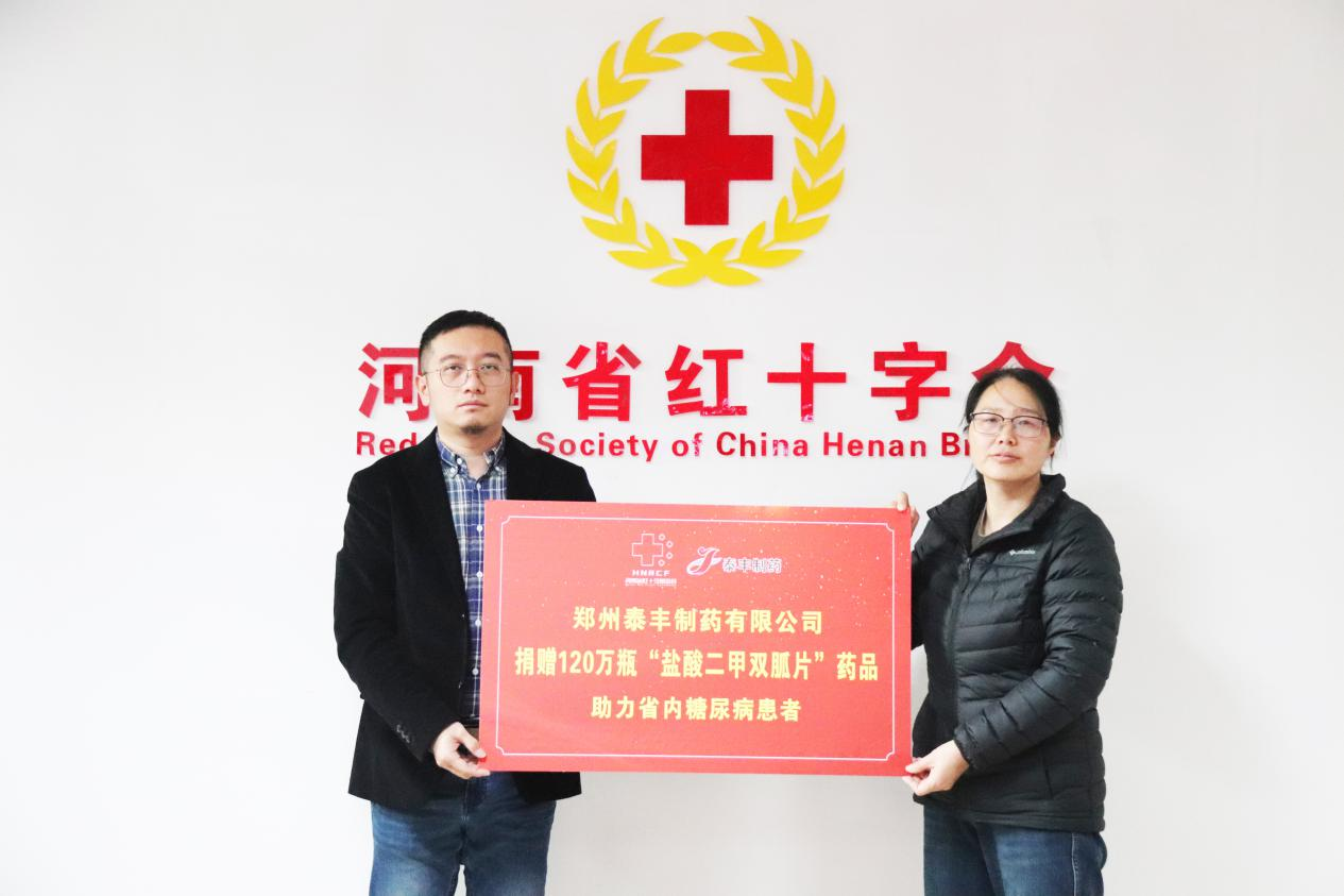 仪式现场郑州泰丰制药有限公司向省红十字基金会捐赠120万瓶“盐酸二甲双胍片”,旨在缓解省内困难糖尿病患者用药压力,提升基层慢性病防治能力。河南省红十字基金会接受捐赠,并为爱心企业颁发捐赠证书。