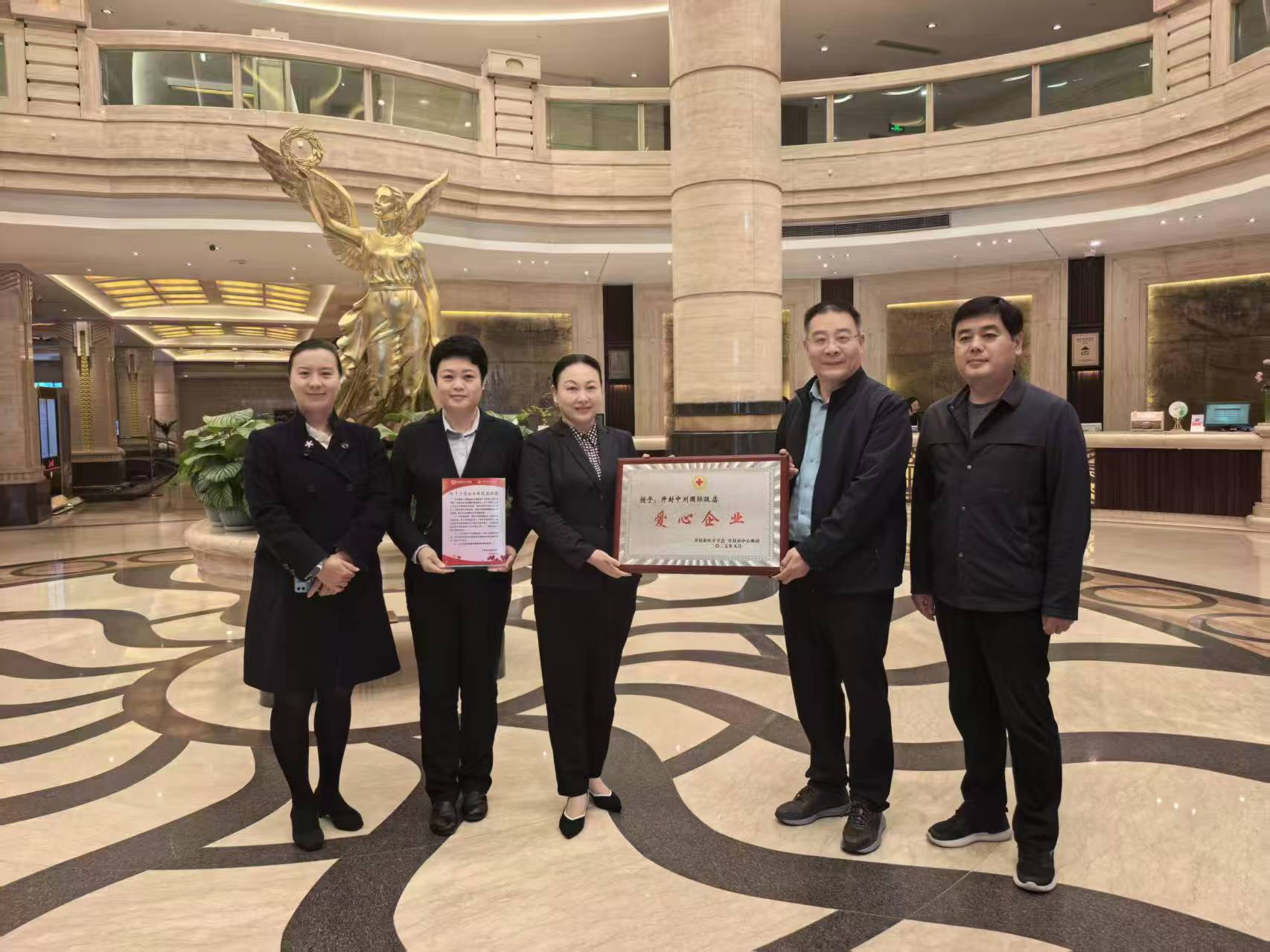 9月28日,开封市中州国际饭店、开封市中州华悦国际酒店获得由开封市红十字会、开封市中心血站授予的红十字“爱心企业”荣誉牌匾,对其在无偿献血、造血干细胞捐献公益事业中作出的积极贡献予以肯定。开封市红十字会专职副会长李新民、秘书长刘枢、市中心血站党支部委员张克平参加授牌活动。