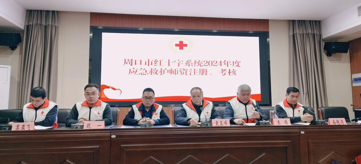 王伟主持了本次考核动员会,并报告了 2024 年周口市红十字会应急救护工作,2024 年周口市红十字会在应急救护培训方面成果丰硕。依托“红十字应急救援行动”项目,通过红十字应急救护“五进”的形式深入社区、校园、机关、企业、农村等开展应急救护普及培训活动,使众多群众受益,进一步夯实了红十字会在救护培训工作中的主体作用。