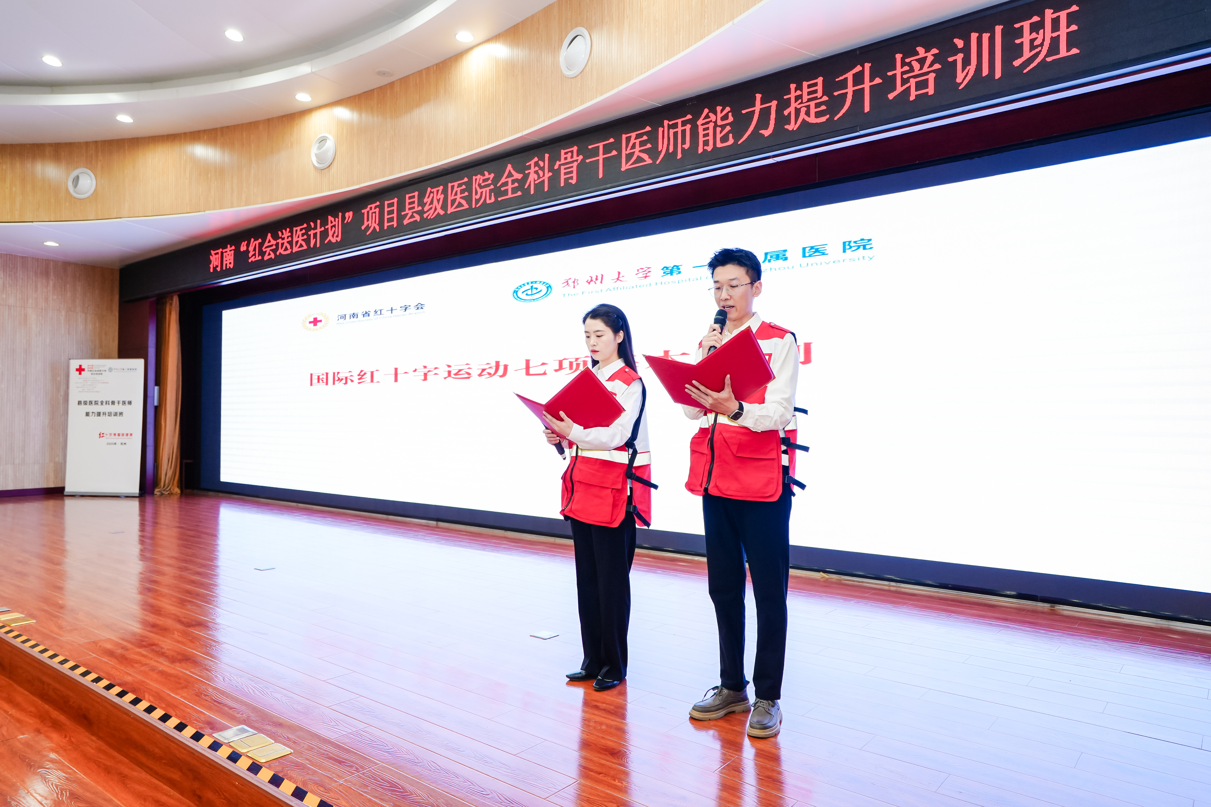 仪式现场,红十字志愿者庄严宣读国际红十字运动七项基本原则,“人道、博爱、奉献”的红十字精神与医者仁心的职业坚守深度交融,为本次培训筑牢思想根基。开班第一课上,郑大一附院全科医学科主任李晓丽以《全科医学学科建设与发展》为题,深入剖析基层医疗资源优化配置路径,为全科医学学科建设提质、基层医疗服务效率提升提供了专业指引。