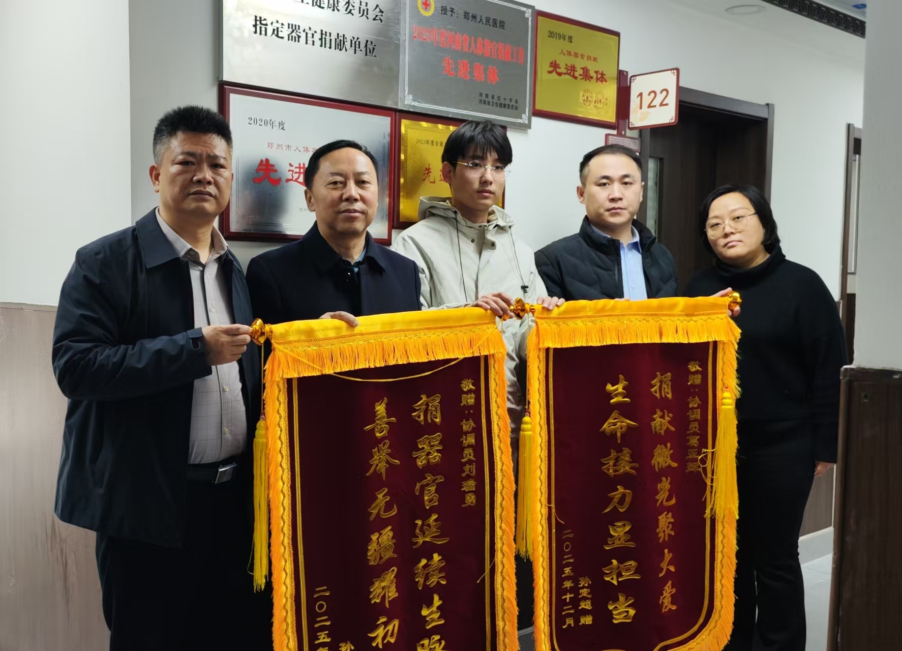 “感谢你们,让我父亲以另一种方式延续生命,也让我们感受到了无比的人道温暖!”——近日,在郑州人民医院OPO办公室门口,两面金灿灿的锦旗,由人体器官捐献者孙先生的儿子递到了河南省红十字会党组成员、副会长兼秘书长刘瑞勇和郑州人民医院OPO工作人员葛亚辉的手中。近日来,中国人体器官捐献协调员刘瑞勇、葛亚辉,按照国家人体器官捐献相关规定,规范认真地为孙先生的捐献进行了协调见证,协调员专业、细致、暖心的心理慰籍和肯定、支持等共情举动,得到了捐献者家属的强烈共鸣,捐献之后即为协调员送来了锦旗。捐献者家属为协调员敬献锦旗,在河南省实施人体器官捐献以来尚属首次,在全国也不多见。