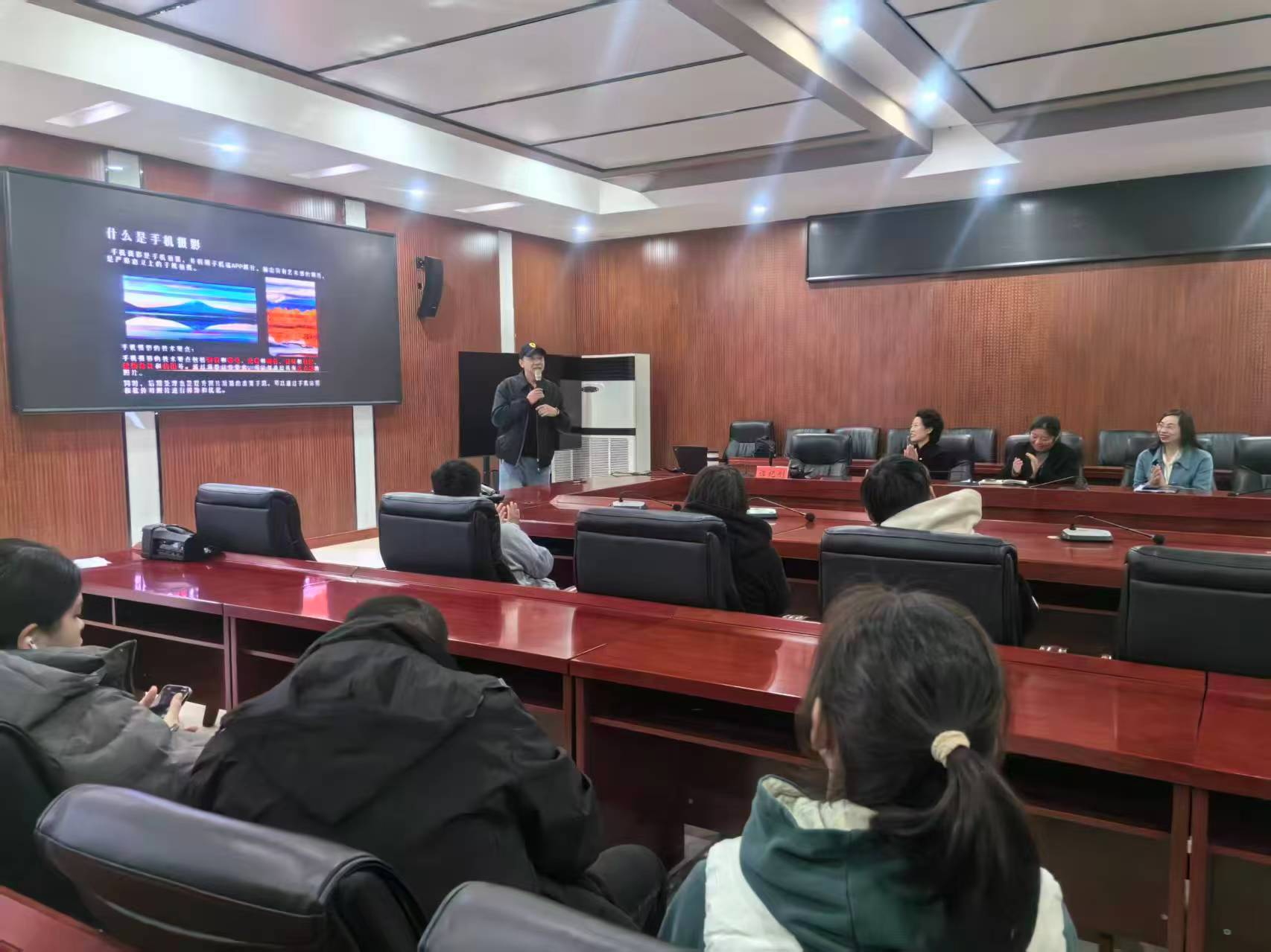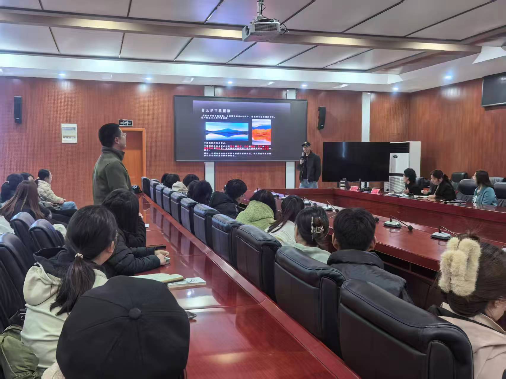 在互动环节,谭老师现场指导大家拍摄本节课场景,并“手把手”演示调整方法。学员们纷纷拿起拍摄设备进行现场实操,主动向谭老师请教切磋,交流热烈,学习氛围浓厚。