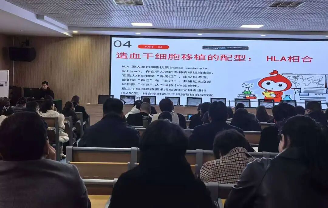 南阳市第二人民医院长期以来积极参与“5.8 人道公益日”“红会送医计划”等公益项目,用实际行动传递医者大爱,同时作为南阳市首批获得非血缘造血干细胞采集备案资质的医疗机构,在此次活动中,医院提前部署、细致筹备:一方面,医院开展造血干细胞科普讲座,由红十字会工作人员讲解入库流程,本院血液科专家普及造血干细胞知识,让参与者全面了解捐献相关信息;另一方面,通过集体会议、线上平台发布倡议书,扩大活动知晓度,号召更多人加入志愿队伍。活动现场科普展板依次排列,血样采集区的规范布置,整个招募工作高效、有序推进。