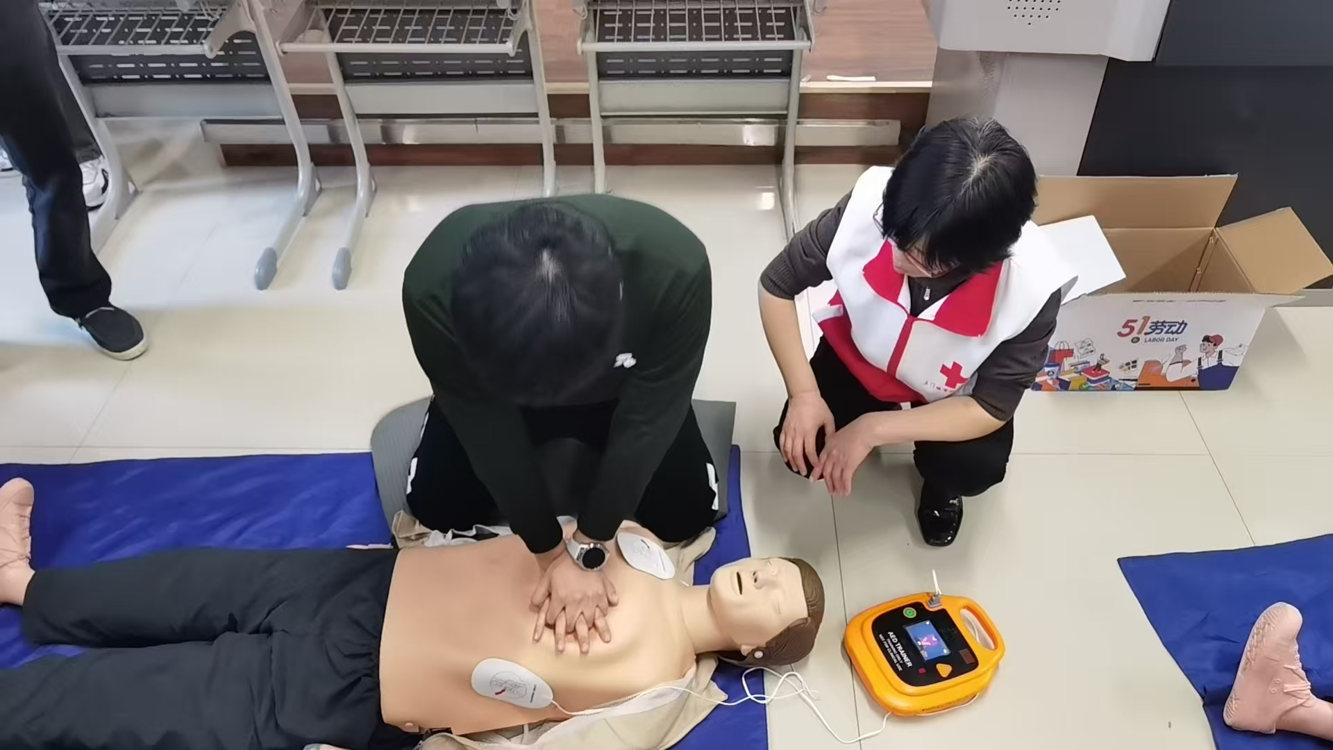 本次培训由三门峡市红十字会应急救护讲师翟巧玲、黄丹丹进行授课。培训内容为心肺复苏(CPR)和自动体外除颤器(AED)使用。培训采用“理论讲解+实操演练”的方式,确保每位学生都能掌握关键急救技能。培训讲师通过生动的案例和通俗易懂的语言,向学生们讲解了急救的基本原则、操作步骤以及注意事项。重点强调了“黄金4分钟”在心肺复苏中的重要性,让他们深刻认识到及时施救对挽救生命的关键作用。学生们听讲认真仔细,并积极与老师进行互动,确保掌握每个知识点。