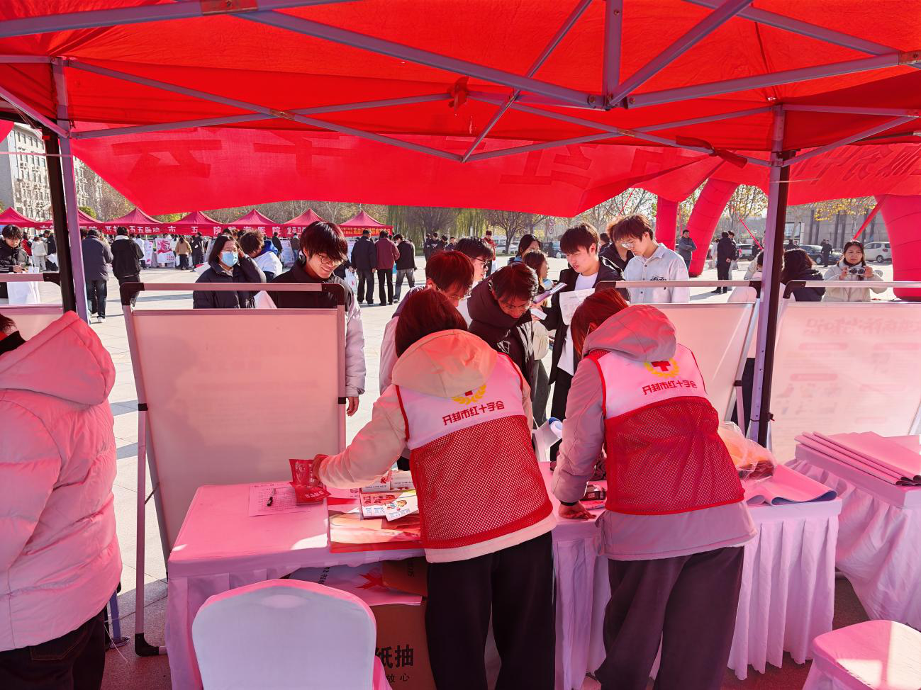 开封市红十字会的宣传展位前,早早围满了充满朝气的同学们。我们的工作人员和志愿者面带微笑,通过精心制作的宣传展板和通俗易懂的讲解,向同学们普及艾滋病的传播途径、预防措施以及如何正确看待艾滋病感染者。引导大家科学防艾,消除不必要的恐惧与歧视,传递“携手防艾,责任共担”的温暖理念。